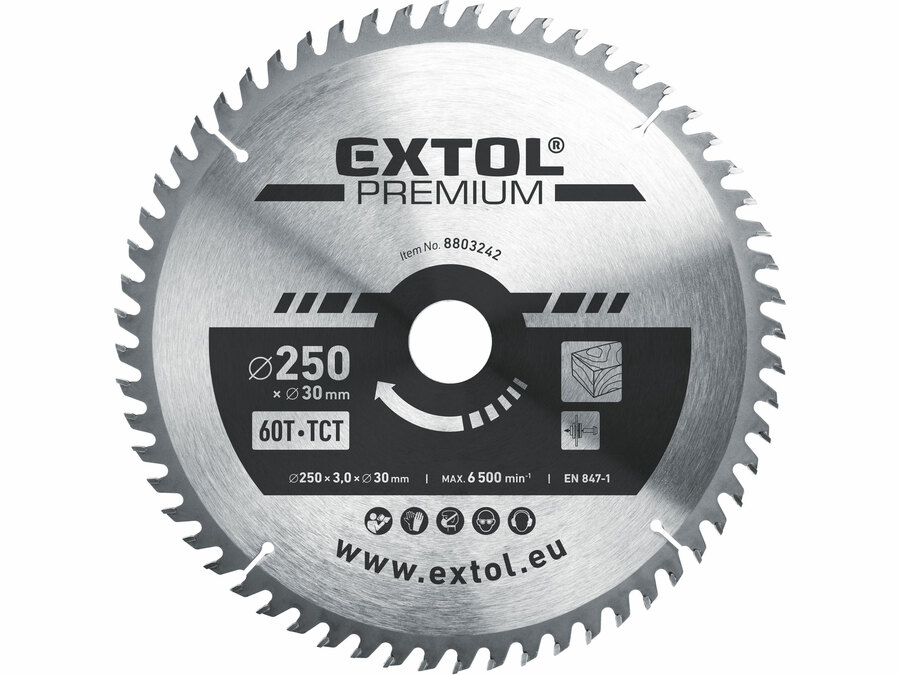 EXTOL PREMIUM Körfűrészlap Körfűrész tárcsa fűrésztárcsa Vídiás 250×30mm T60 3,2mm