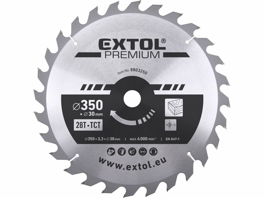 EXTOL PREMIUM Körfűrészlap Körfűrész tárcsa fűrésztárcsa Vídiás 350×30mm T28 3,5mm
