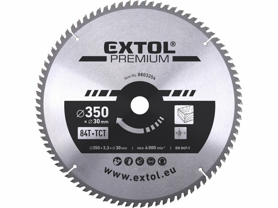 EXTOL PREMIUM Körfűrészlap Körfűrész tárcsa fűrésztárcsa Vídiás 350×30mm T84 3,5mm