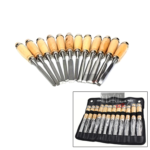 -Minőségi kivitelű 12db-os favéső készlet köszörült, polírozott éllel Cr-Va (Chrome-Vanadium) acél ötvözet alapanyagból.