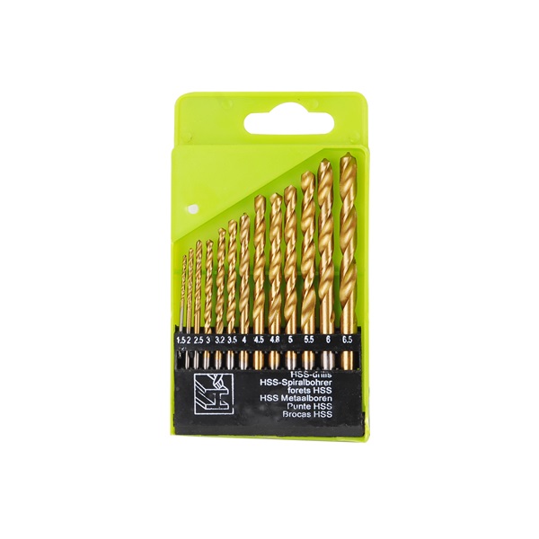 Fúrószár Kobaltfúró Fémcsigafúró készlet HSS Titán Bevonat 13db 1,5- 6,5mm (Műanyag Doboz)Fúrószár Kobaltfúró Fémcsigafúró készlet HSS Titán Bevonat 13db 1,5- 6,5mm (Műanyag Doboz)