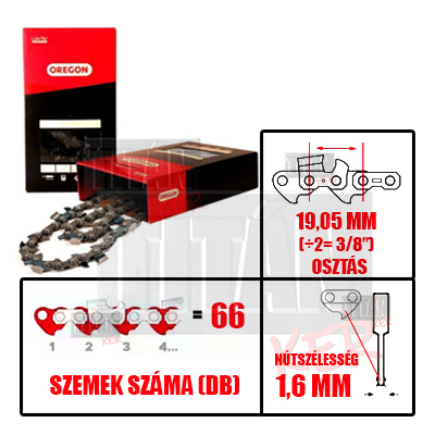OREGON Láncfűrész lánc fűrészlánc 66 szem 3/8″ 1,6 mm